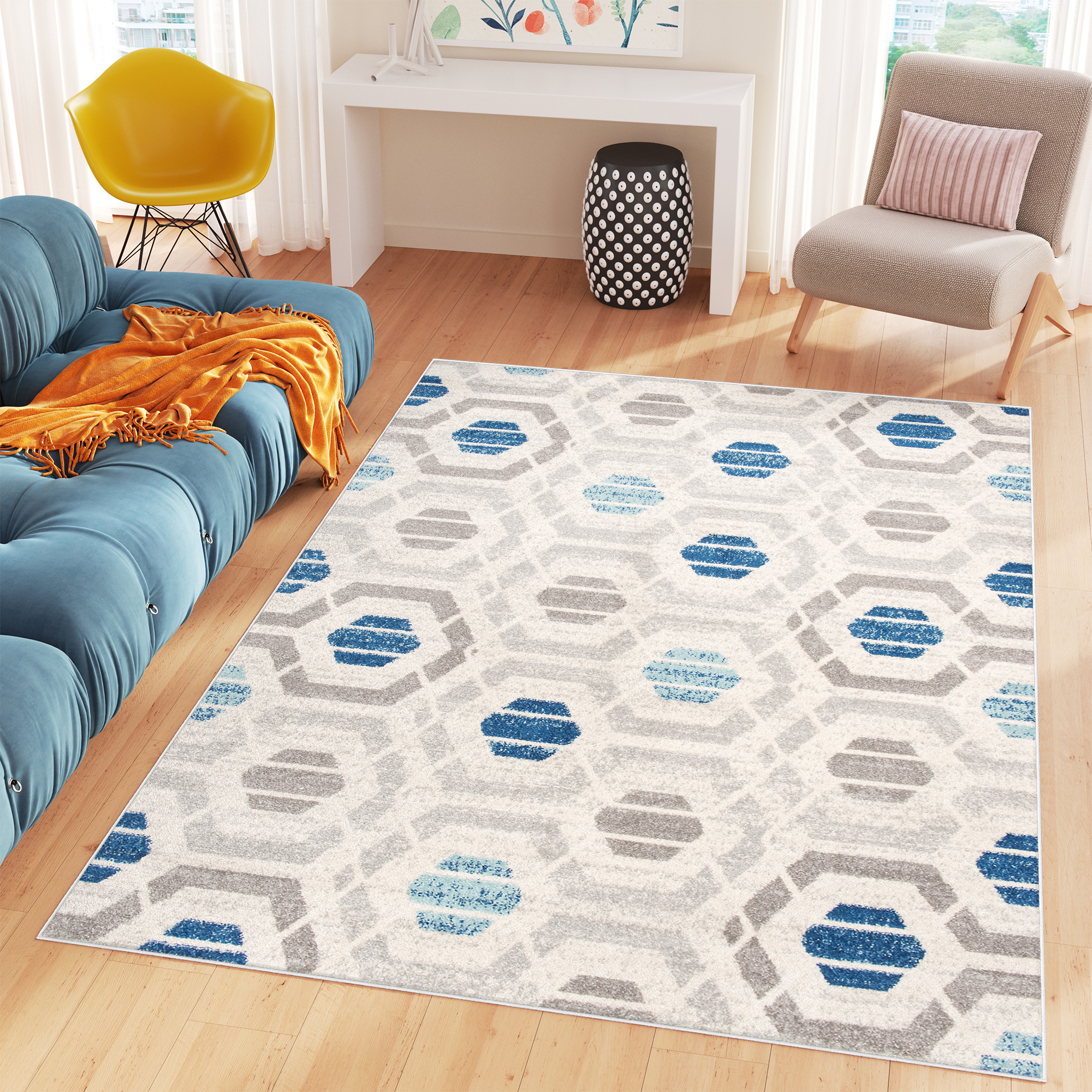Con grande goia vi presentiamo i nostri tappeti della collezione COSMO. Grazie ai colori goiosi potete rinfrescare la casa aggiungendo un accento positivo. I tappeti perfettamente completeranno i spazi moderni. La scelta dei motivi geometrici ed astratti vi permette di creare un spazio che va alla moda. Una soluzione perfetta per il tuo salotto per introdurre un tocco di stile. I tappeti sono resistenti allo sporco e facili da mantenere e pulire!