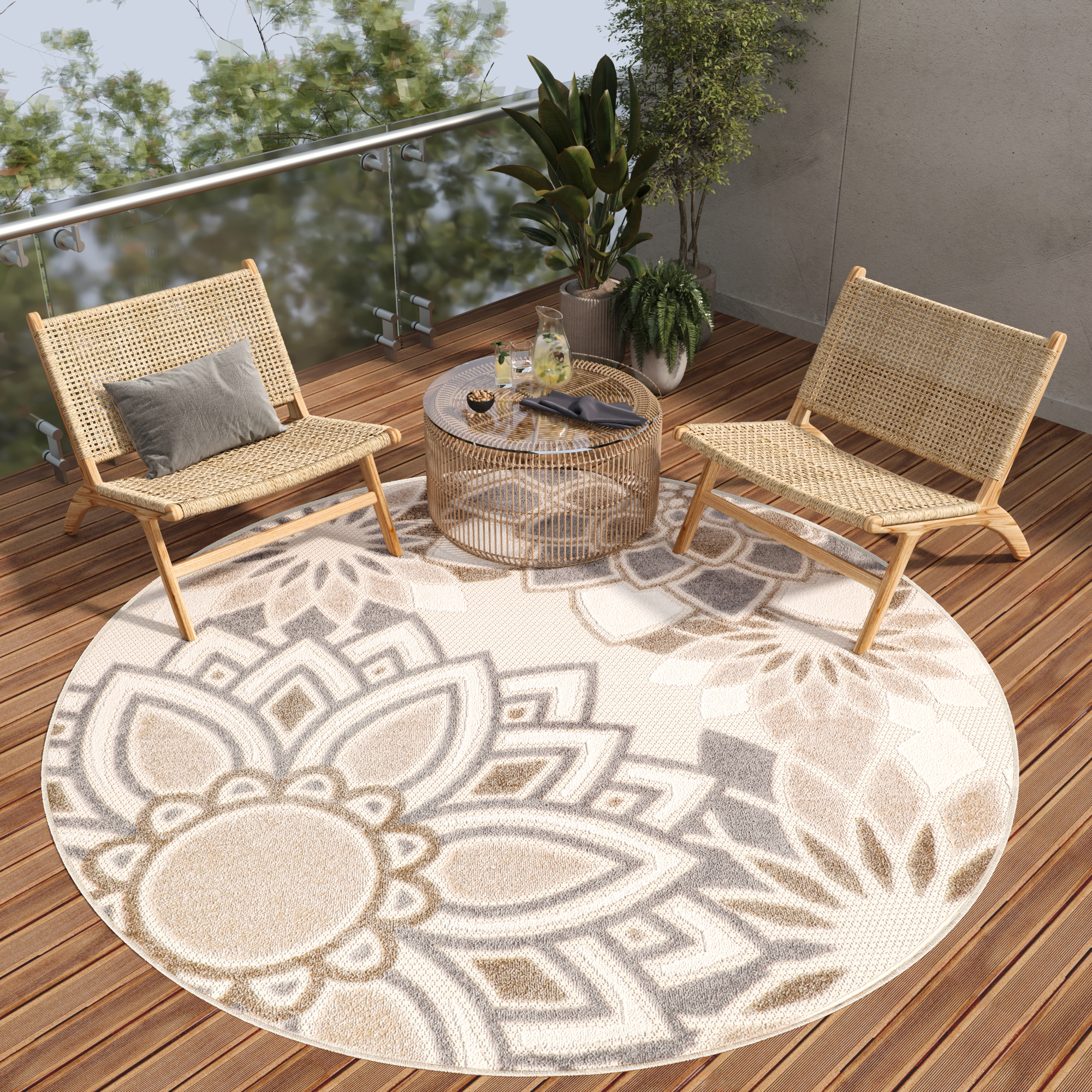 Scopri una collezione unica di tappeti rotondi Patio, che combinano eleganza, funzionalità e design moderno. Questi tappeti eccezionali, pensati sia per ambienti interni che esterni, porteranno armonia e stile ad ogni angolo della tua casa.