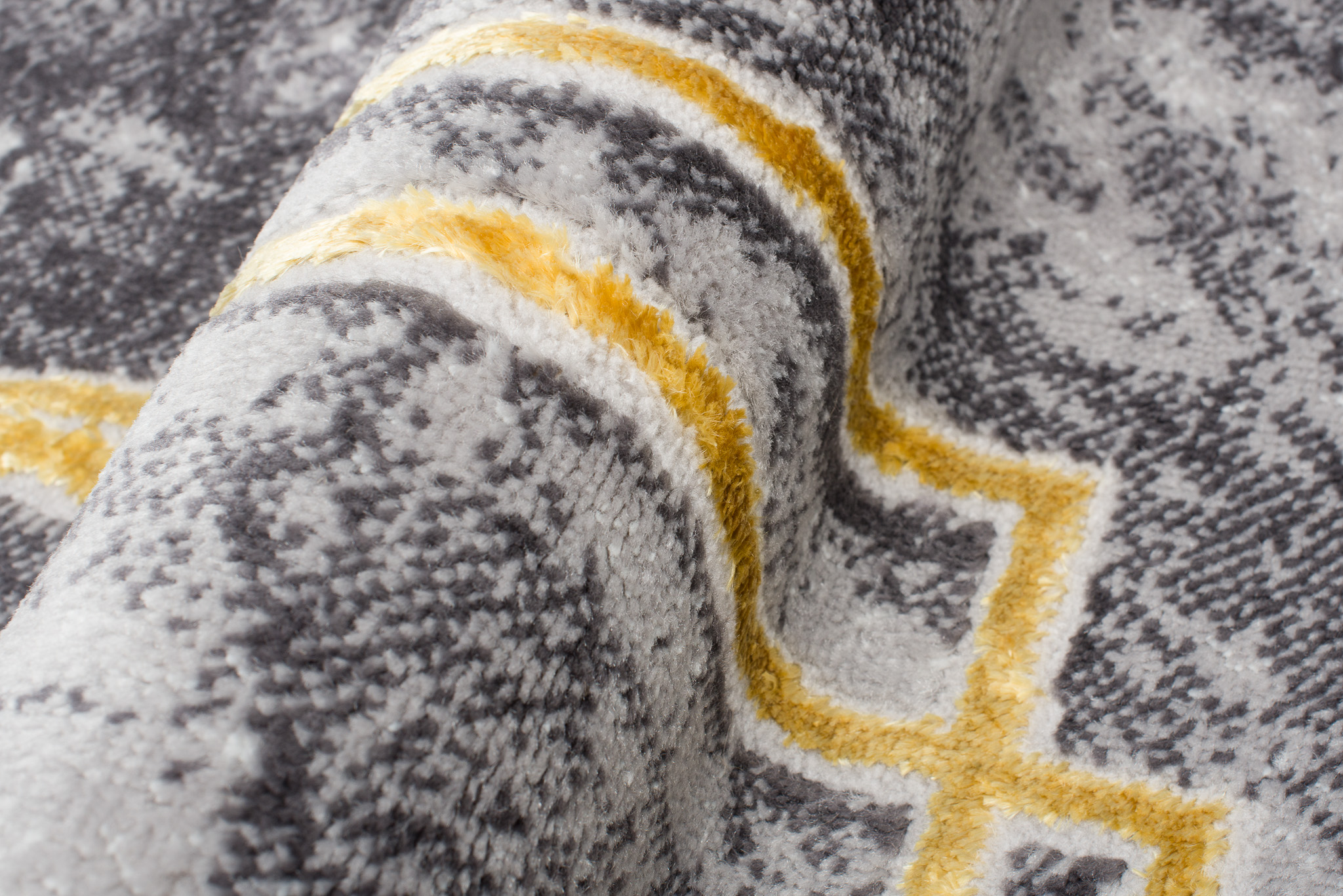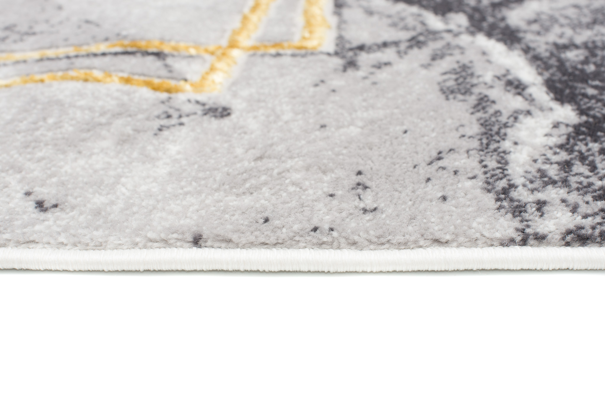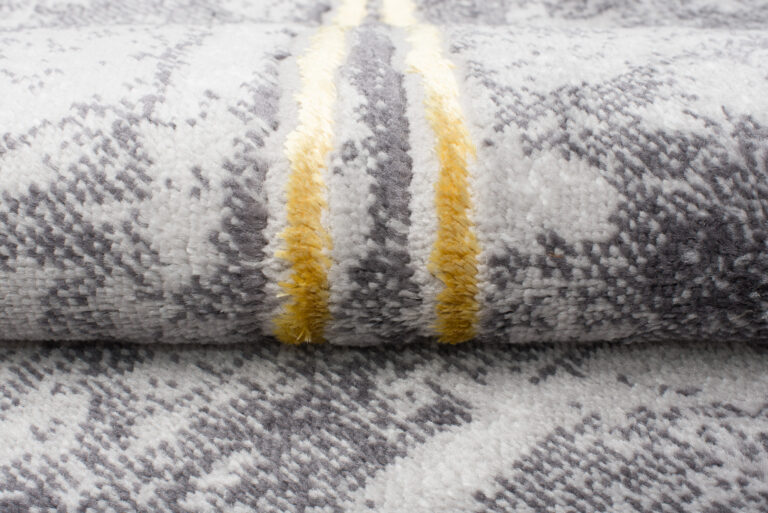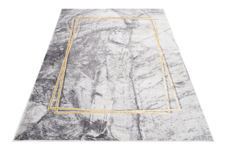 Ciò che distingue questa collezione dalle altre sono i motivi astratti e il sottile filo d’oro, che aggiunge una brillantezza unica ai tappeti. I colori dominanti della collezione sono il grigio profondo, l’elegante blu marino e il raffinato oro, che si uniscono armoniosamente per creare un effetto visivo accattivante.